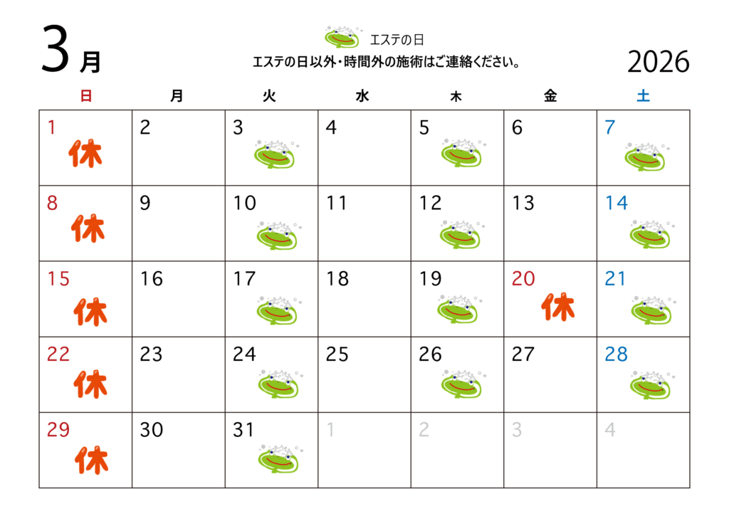 3月のエステの日が決まりましたので、ご案内いたします。